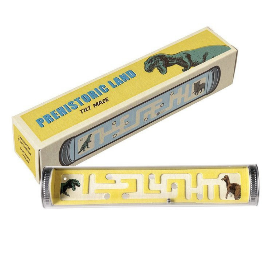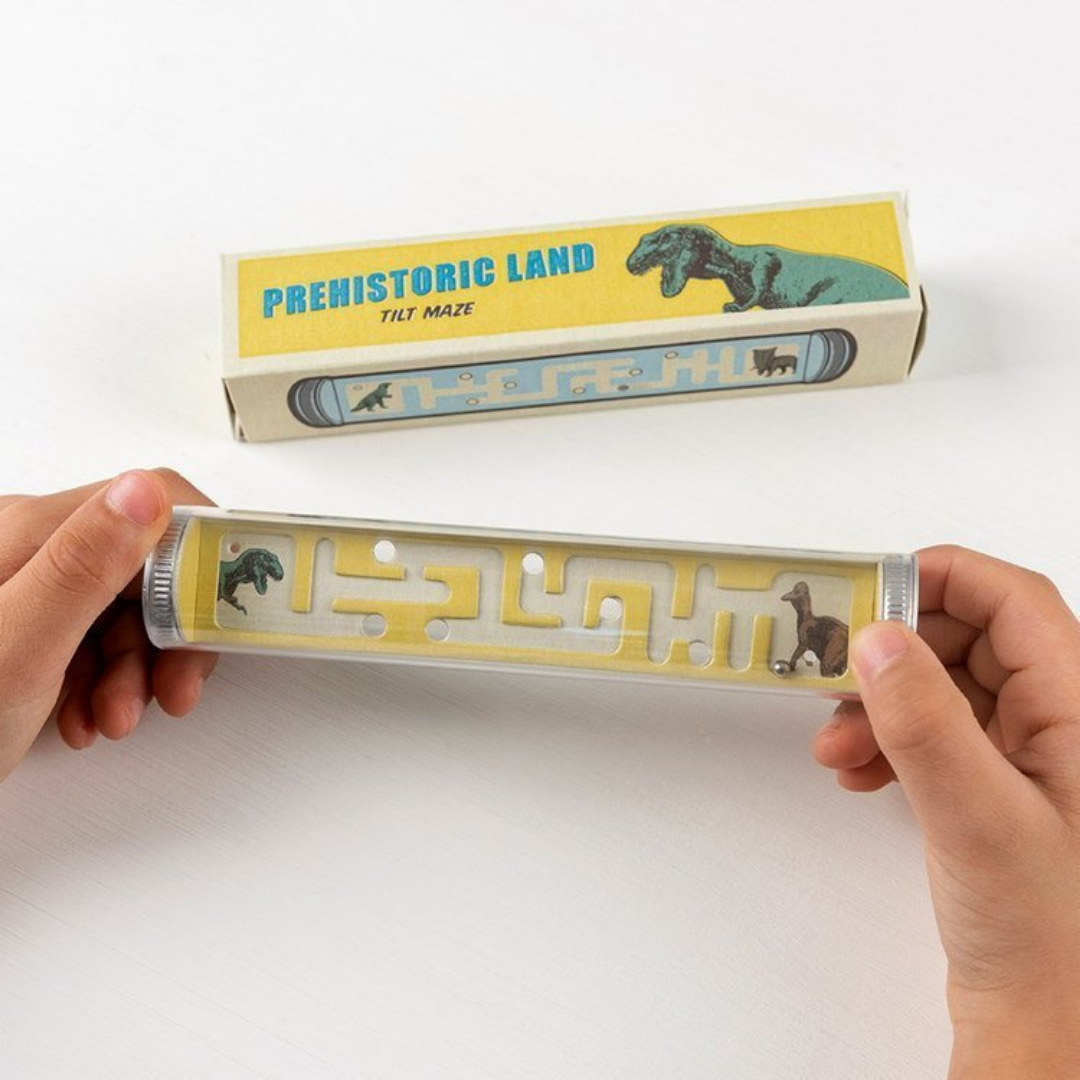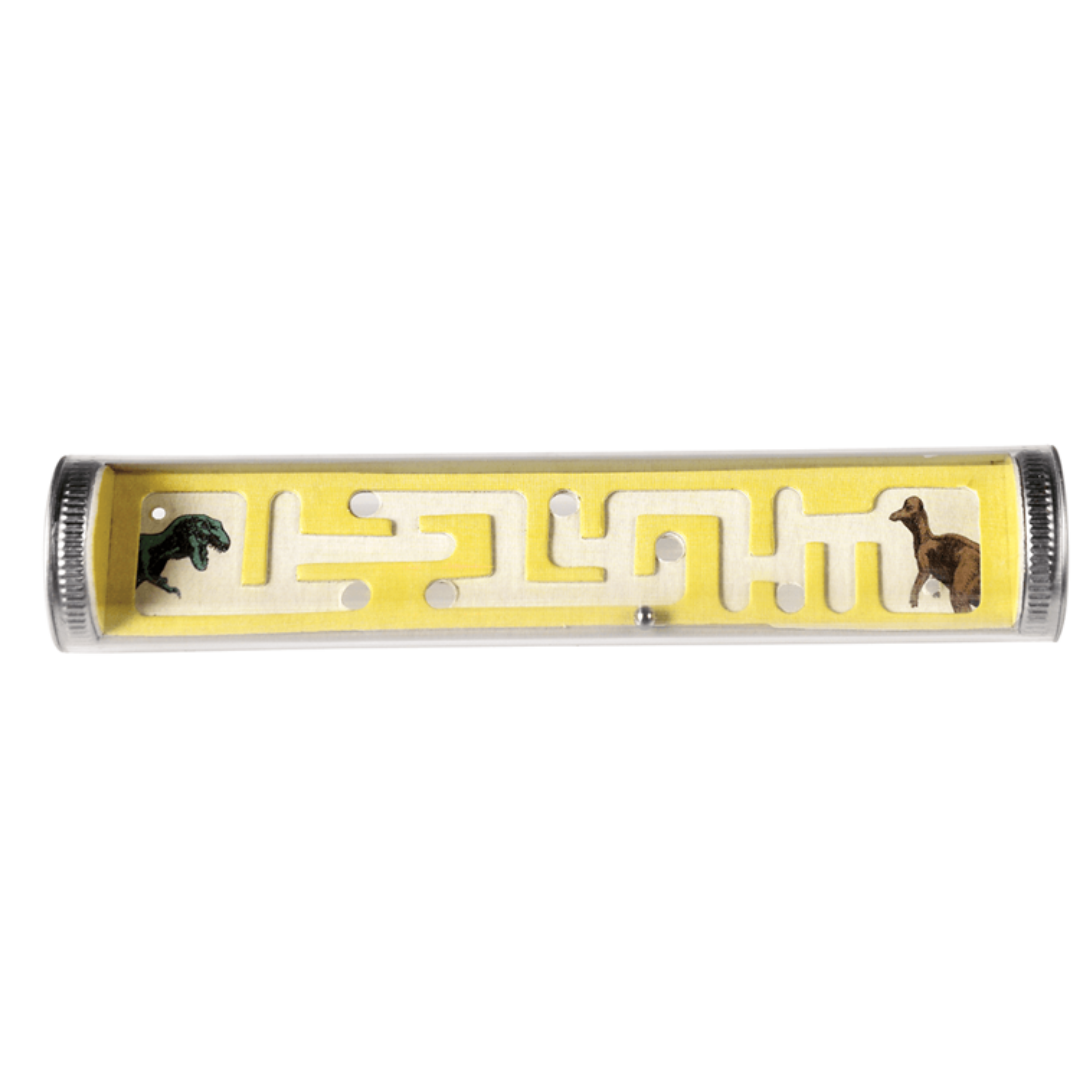 Gra zręcznościowa polegająca na manewrowaniu kuleczką tak, aby dotarła ona na drugi koniec labiryntu. Tuba wielkością dopasowana idealnie do rączek dziecka. Gra posiada ilustracje prehistorycznych zwierzaków.