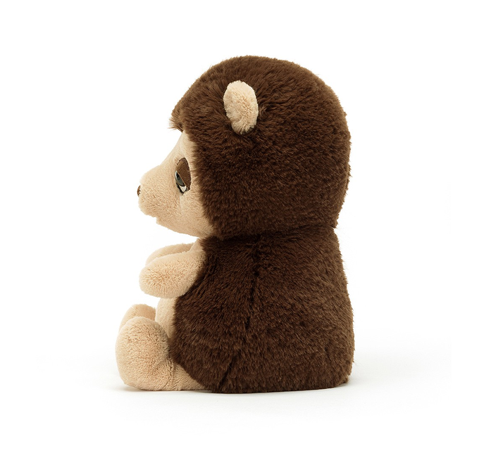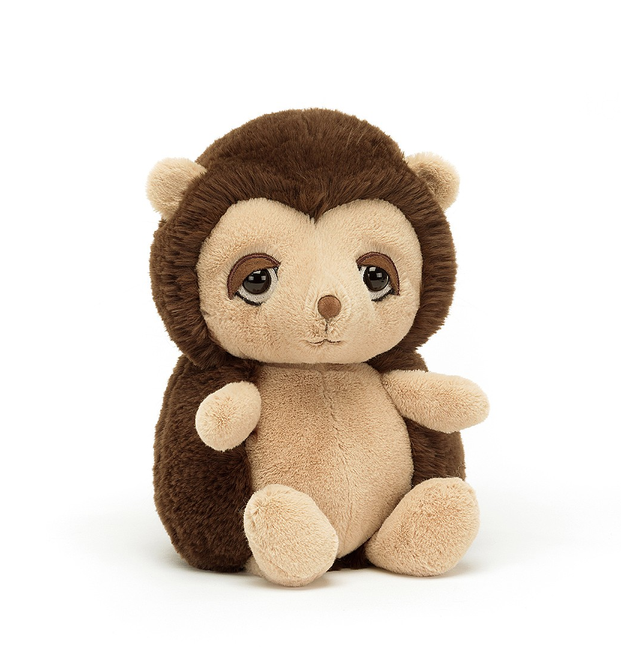 Uroczy Jeżyk od Jellycat to wyjątkowo miękki i przytulny pluszak, który z pewnością podbije serca najmłodszych. Jeżyk ma duże, marzycielskie oczka, karmelowy nosek oraz kremowy pyszczek, brzuszek i łapki. Jego miękkie, czekoladowe kolce są idealne do przytulania. Ten pluszak to idealny towarzysz zabaw, drzemek i codziennych przygód.