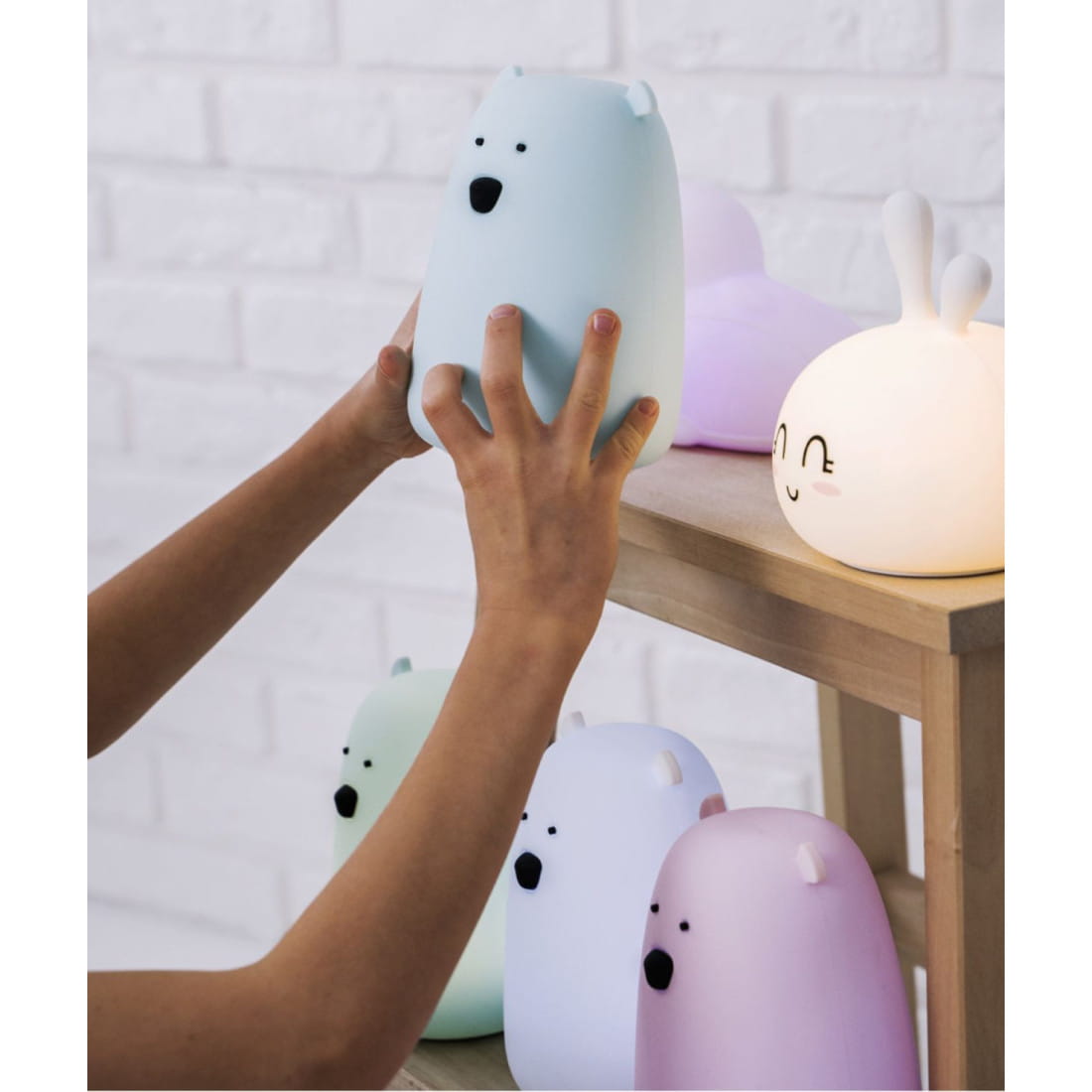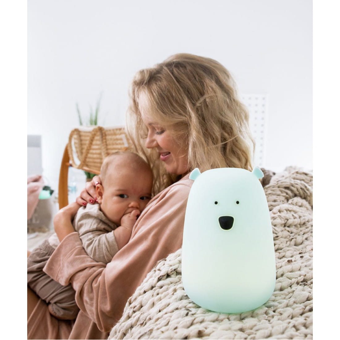 Szukasz bezpiecznego światła nocnego, które stworzy przytulny klimat w pokoju maluszka i ułatwi wieczorne karmienie czy przewijanie bez pełnego rozbudzania? Niebieska lampka LED Miś Rabbit & Friends to funkcjonalne i estetyczne rozwiązanie – wykonana z miękkiego silikonu, świeci delikatnie w aż 7 kolorach, które można zmieniać jednym dotknięciem dłoni.