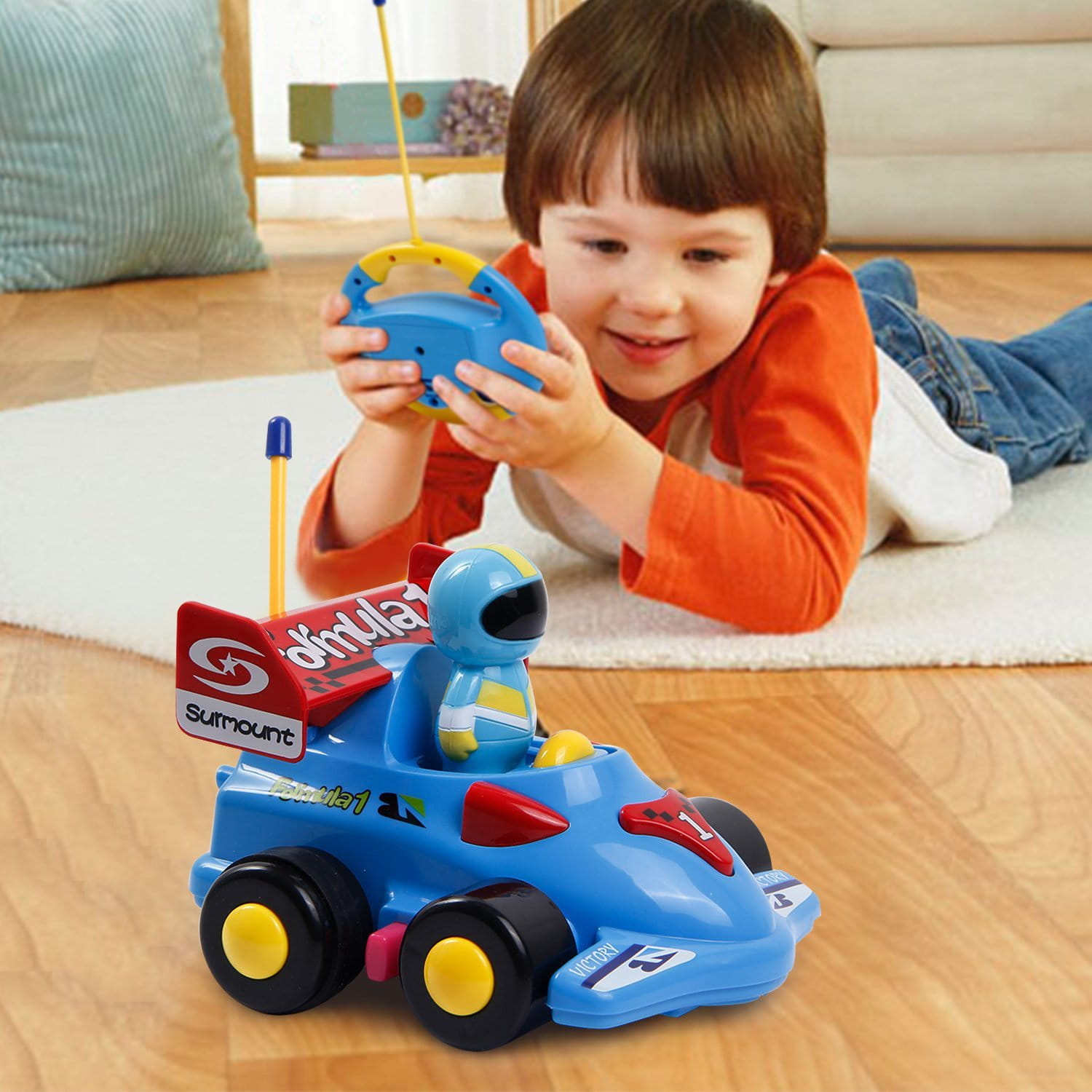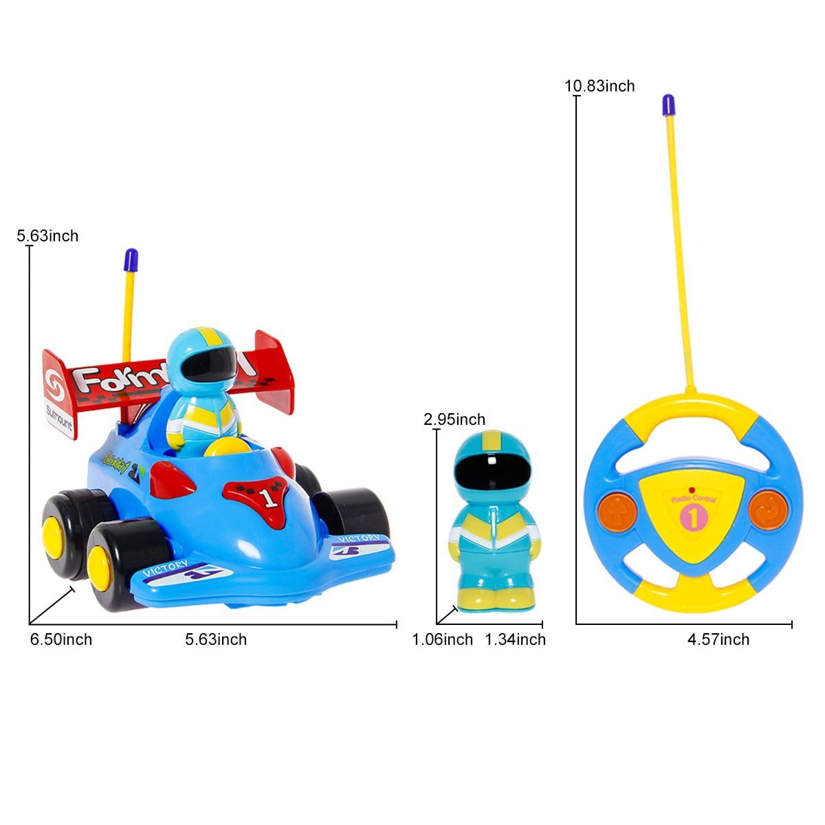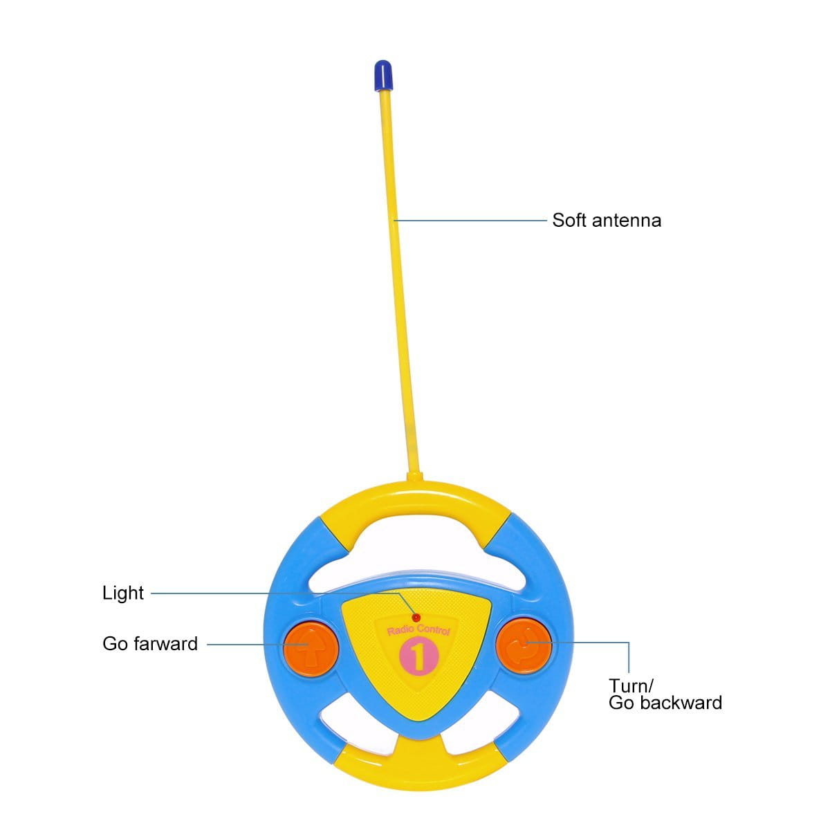 - Prosta obsługa: Intuicyjny pilot z dwoma przyciskami pozwala dziecku łatwo sterować zabawką.